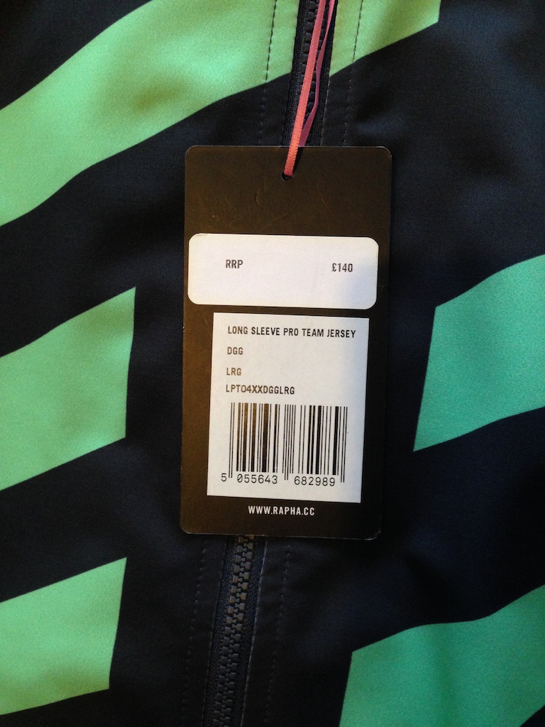 Hi there, selling a new Rapha Pro team long sleeve jersey in black and green data print. Bought as a gift but the arms are too long for me.