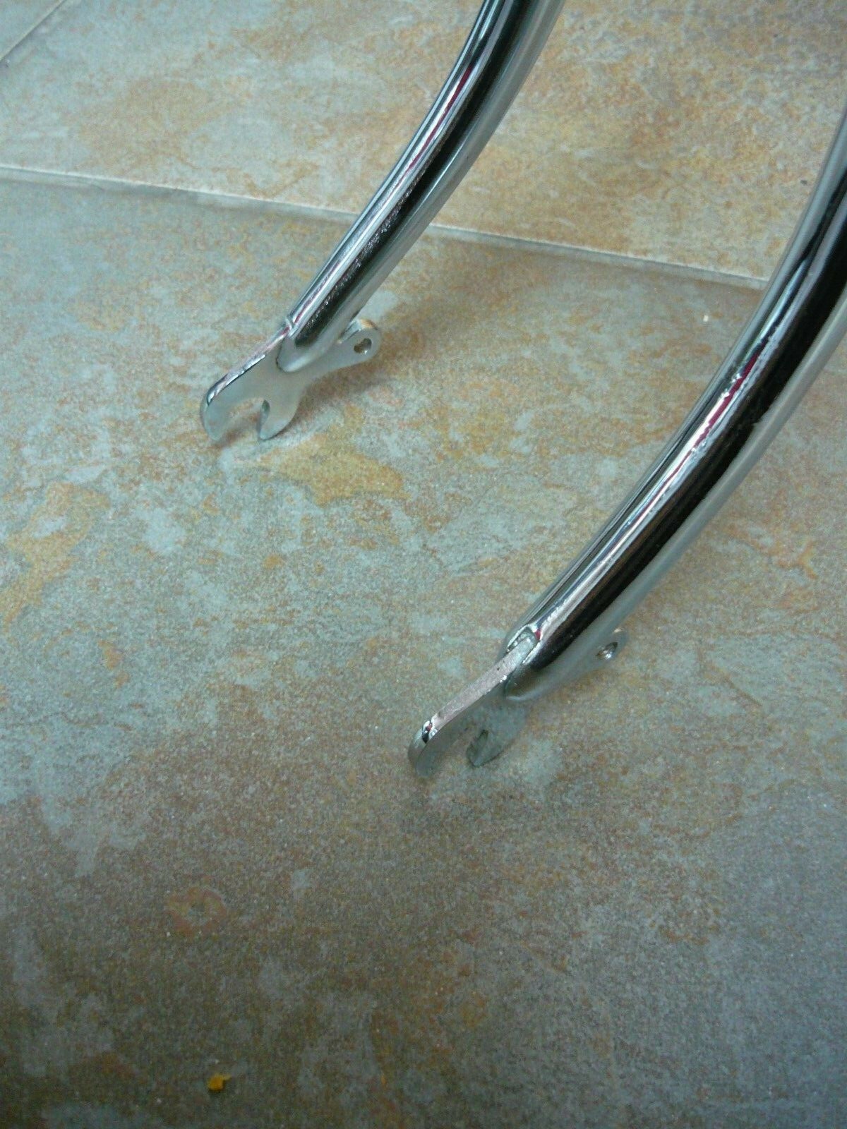 I need a little help here please. I'd love to buy this frame, but the forks just don't look right to me. The gaps where the fork ends attach to the legs are just not right, they remind me of a low budget Peugeot !? Also, there is no frame number on the left rear dropout.