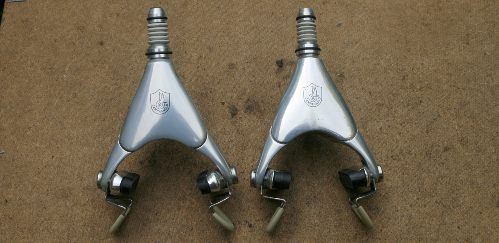 Like this: http://hilarystone.com/images/sale%20images/Brake%20callipers/Campag-delta-brakes.jpg