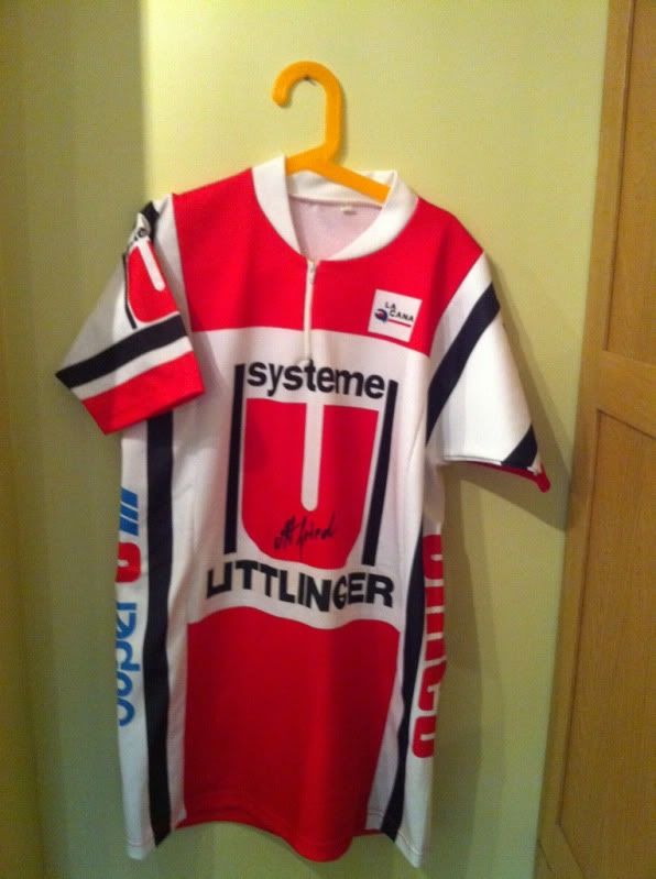 Systeme U Super U Unico jersey. 40" longish, it's 100% polyester with fleecy lining, made in Italy. Classic Fignon team from the 80s re-imagined. £ 12.00 posted.