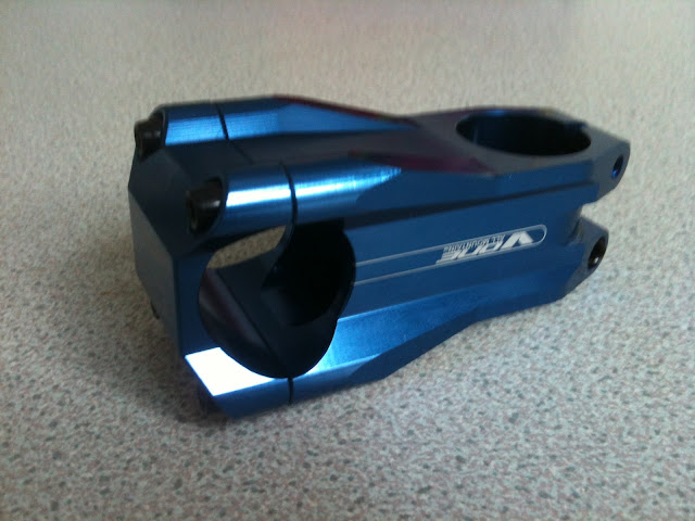OK to start with probably the most beautiful piece of kit on the bike - a Sunline V1 stem - neat, clever CNCing, alot of internal machining, chamfered bar clamp area and only 34mm stack height on the steerer. The colour isn't too bad in isolation, but wait until you see the bars!