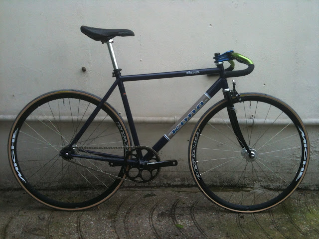 So I'm very happy with the final product (despite the green bars/blue stem!). So to finish, need a new tube and a brake cable (& pos a skinny Selle Italia Flite-style saddle). Then I need to put some miles in.