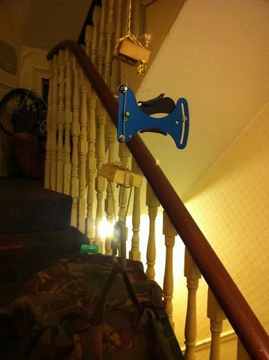 When I reached 75kg I found I needed to adjust the whole thing because the bag was starting to rest on the floor from the cord stretching. I took the weight off, shortened the cord and started again. By the time I got to 95kg the arrangement seemed pretty sketchy and I was a little nervous about something snapping, but nothing did.