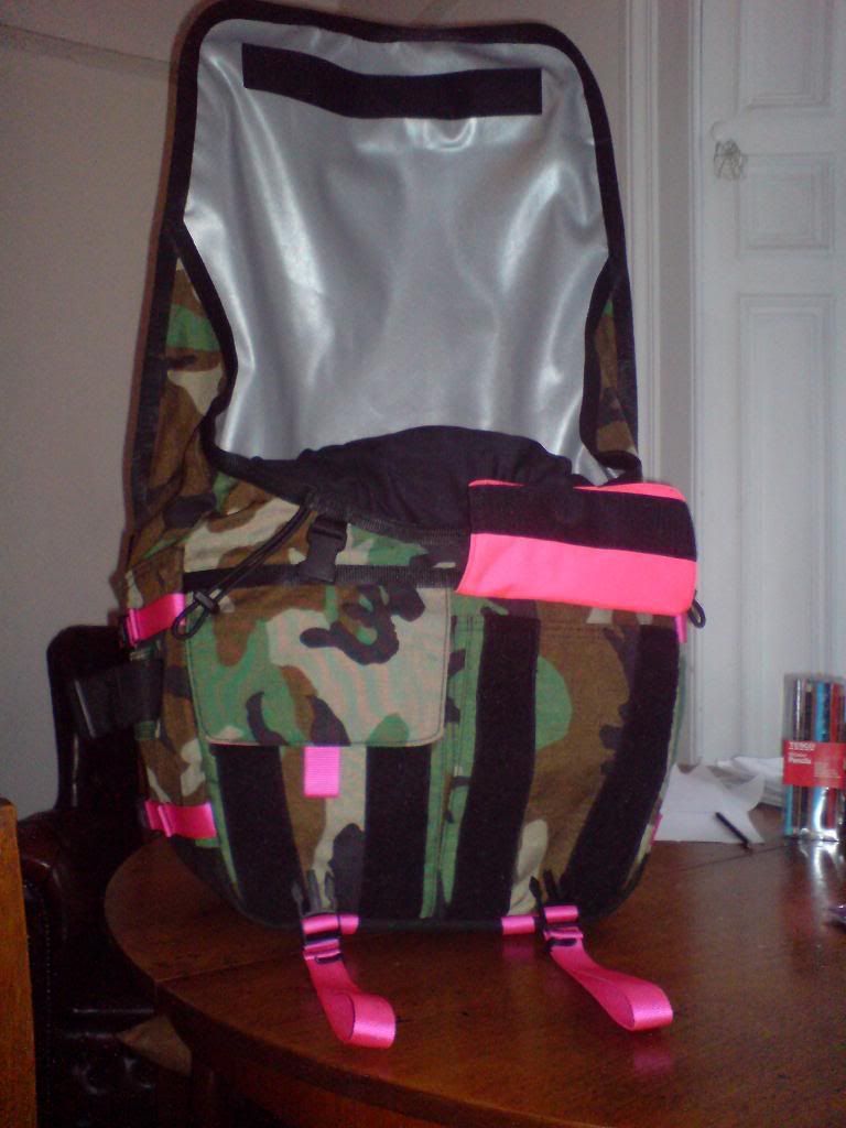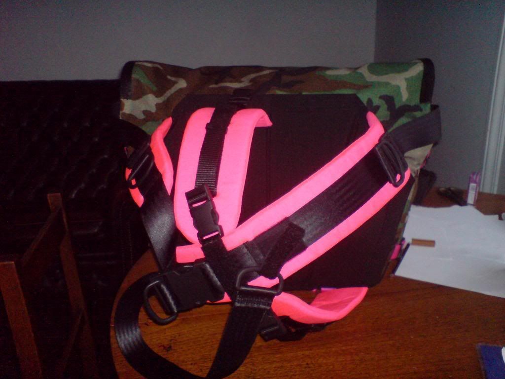 nah Scott, I'm doing it from memory so yup - Neon Pink straps for the 'naturally gifted descenders' silver inners so you can see your gubbins in the bag easier
