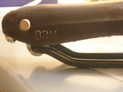 Slightly off target as I've already been surgeonised, but this is my saddle which i think is a Swift, because of the copper rivets. I bought it as seen and interestingly it has the letters AM on the rear, I think that must stand for Alexander Moulton. Obviously produced when he was in his prime!