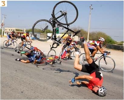 Saw someone else having a moment not long ago; was cycling past Liverpool st. stn whilst the road works were taking place. The whole left side of the road was blocked off with traffic being diverted. Me and a mate head down the loosely blocked off road anyway, followed by a bloke on a shitty mountain bike wearing city (as apposed to cycling) clothes. Up ahead of me i spot what appears to be a line of wet cement about 15 foot across, and 3 foot wide. I consider going through it, as it doesn't look more than a few centimeters deep. Think better of it, and at the last minute and skid to a stop infront of it. Bloke behind is clearly tring to pick up his pace... i shout to him "i'd stop if i were you" (or words to that affect), he gives me a puzzled look, rides straight into what turns out to be a 2 foot deep cement line! Front wheel fully submerged, as were both his legs, and one of his arms. He actually did well to not go face first into it, managing to somehow leapfrog over his bars.