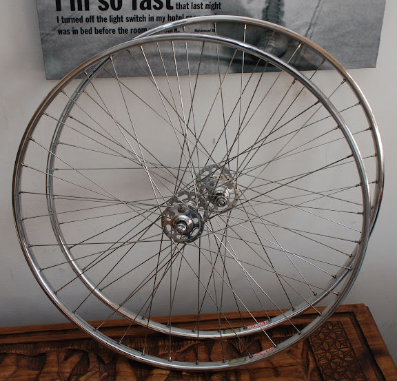 plus a pair of 36 large flange Campag 36's on Mavics ( I think they're tied and soldered too), with old Sprinter tubs on them, hubs & rims are perfect, as ridden numerous times at Calshot- £80
