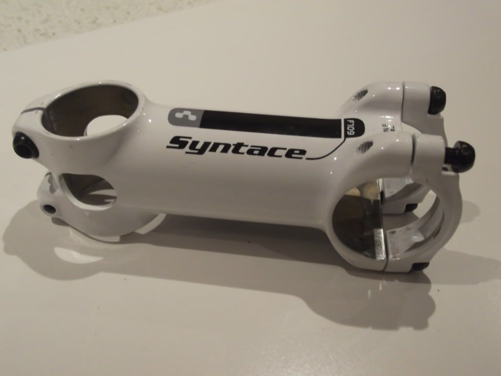Syntace F109 stem. 100mm, 6 degree, 31.8mm clamp, white, 1 1/8" (obviously). Very light, very stiff. It is used, so a few nicks and marks but still looks great when fitted. £28.