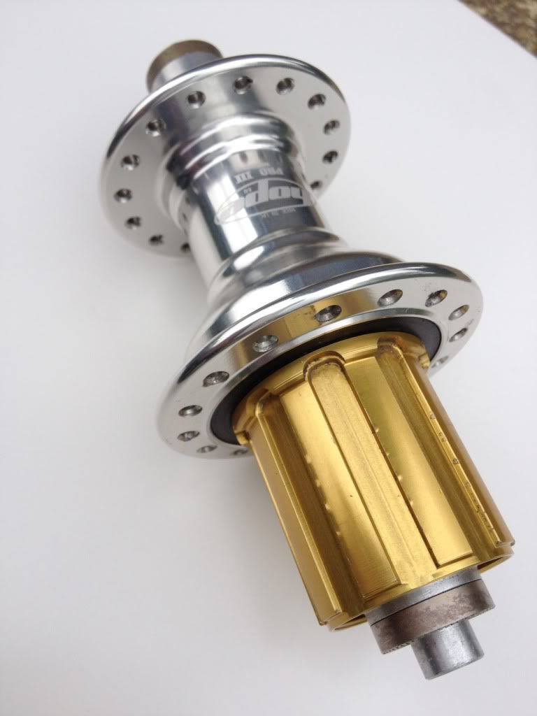 Hope Pro 3 rear hub. 32H silver, Shimano/SRAM freehub. 12 months old. Built into a wheel last April, used on a 4 day tour of Northern France last May and occasional use since. Haven't removed it from the rim yet, so no pics, but if you're interested PM me and I'll get some pics done asap. Great hub, but I'm selling my SRAM group and use Campag on everything else, so this is surplus. £70.