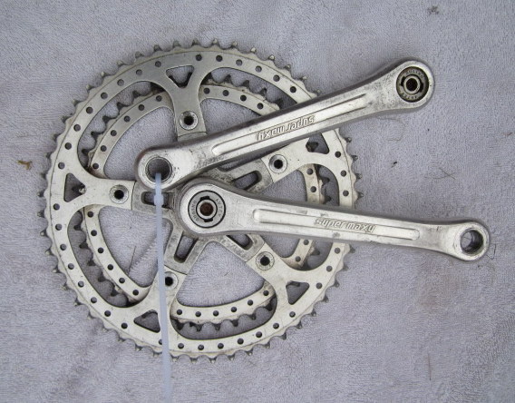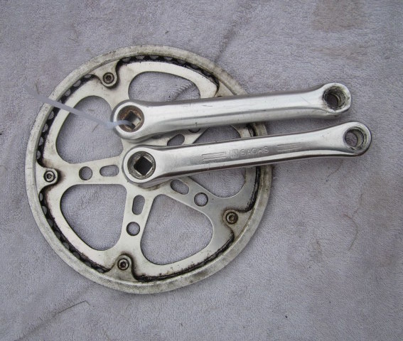 Sachs, single 50t, peugeot left crank, 170mm, seems to give a good chain line with a road size bb - £10