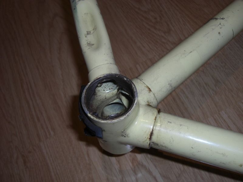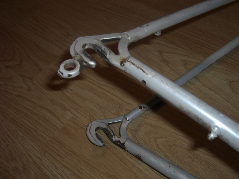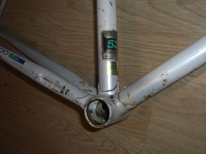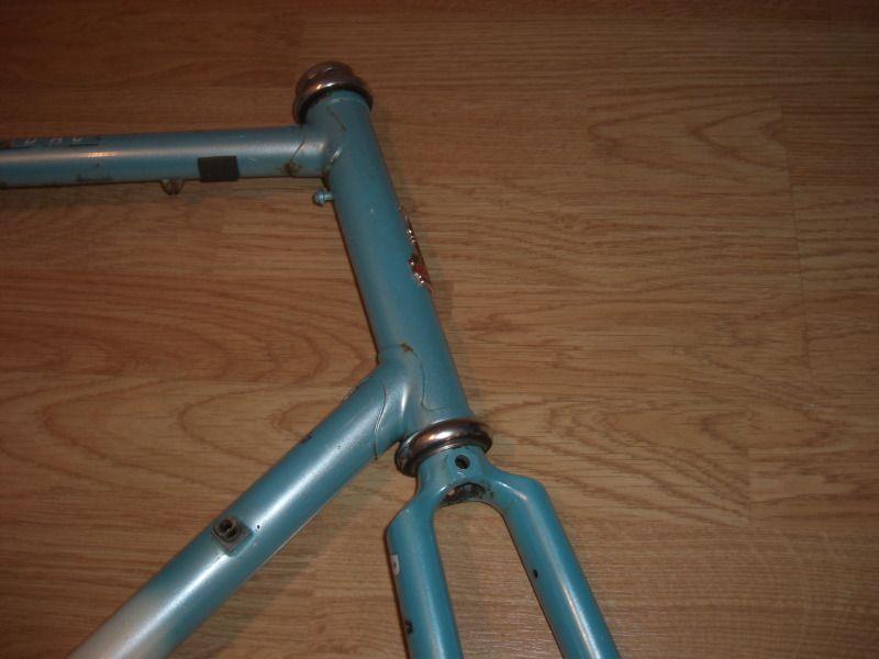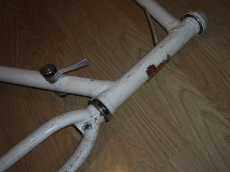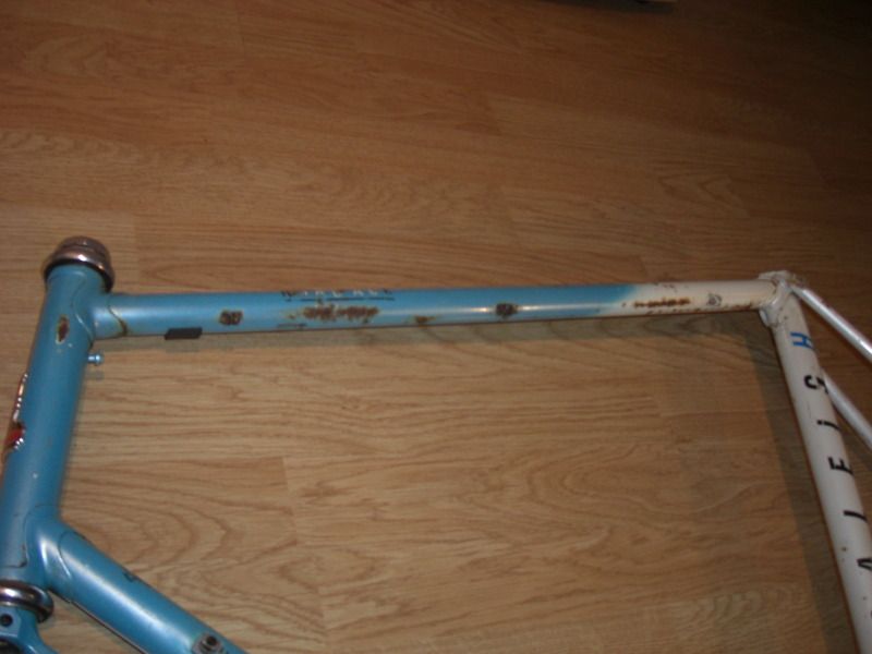 Road Ace, 531c, Gipiemme ends, surface rust (If it was a size smaller I'd strip the guides & bosses & get down www.realitymotorworks.com for a powder) Worst area is where he let moisture sit under the brake cable, see pic. 600 Tricolour headset might revive with fresh grease £60.
