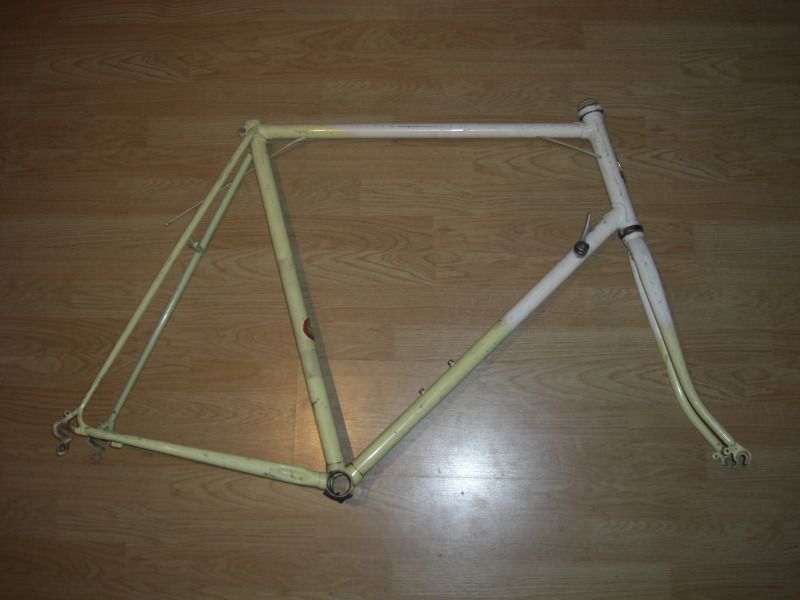 Kellogs Tour, I think it was Reynolds 500 but knob head cleaned all the decals off (except Palmers- local interest!) anyway, still kind of scruffy but not very rusty. Headset would need replacing. £30