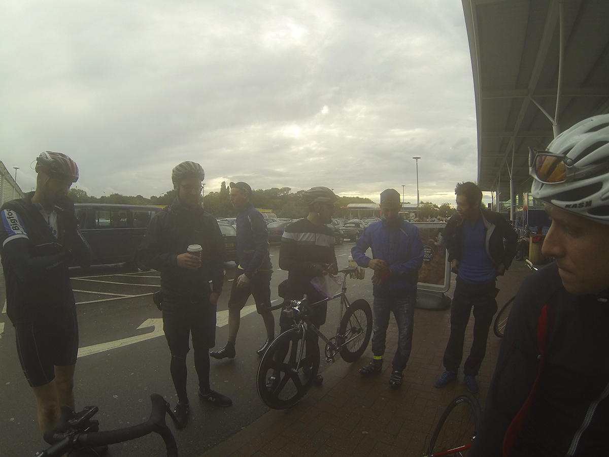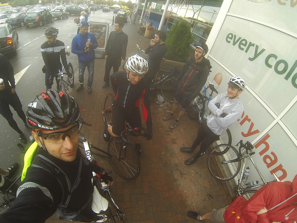 Much respect to my homebwoy Andrey (red, blue, yellow biek + red rain jacket) for stop being lazy unemployed eastern european and getting into the bike game! Kai from E8 for showing us where Hackney is, for the sprints, shouts and for taking time off just before work and holiday to do this massive ride fixed! Arnoldas the guy with heritage bike and yellow rims who unfortunately had to leave due to mechanical problems!