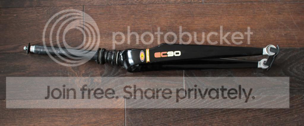 First thing I should mention is there's a small chip in them near the brake hole. I'm pretty sure this is just in the lacquer and a mechanic who had a quick look at them agreed. But at the same time they're carbon & they're forks and I wouldn't want to provide any sort of guarantee - not sure where you are (I'm in Brixton) but would be much happier if you looked it them in person and confirmed you're happy with them before buying.