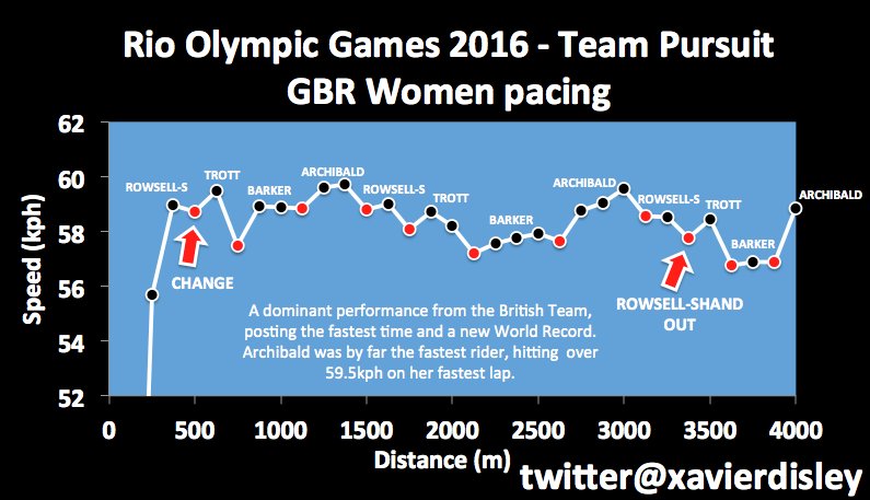 Especially interested in Denmarks run as I think they actually got better off by that long finish run rather than if they'd been able to change.Look at how much the pace drop at each change.