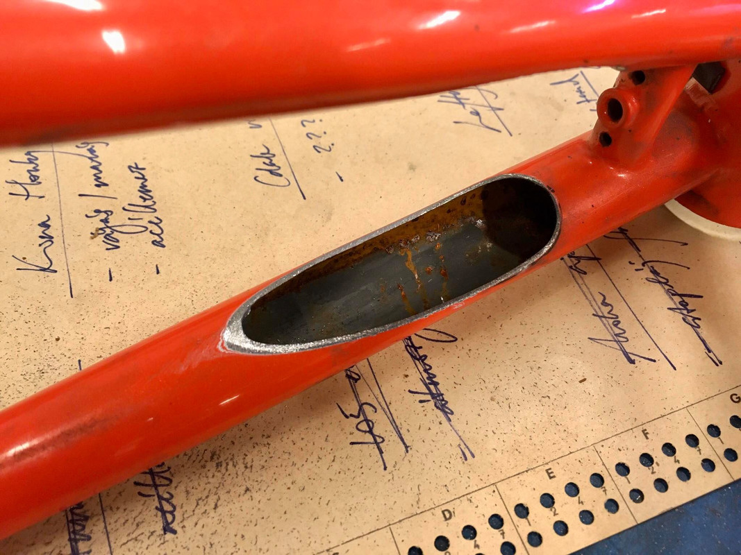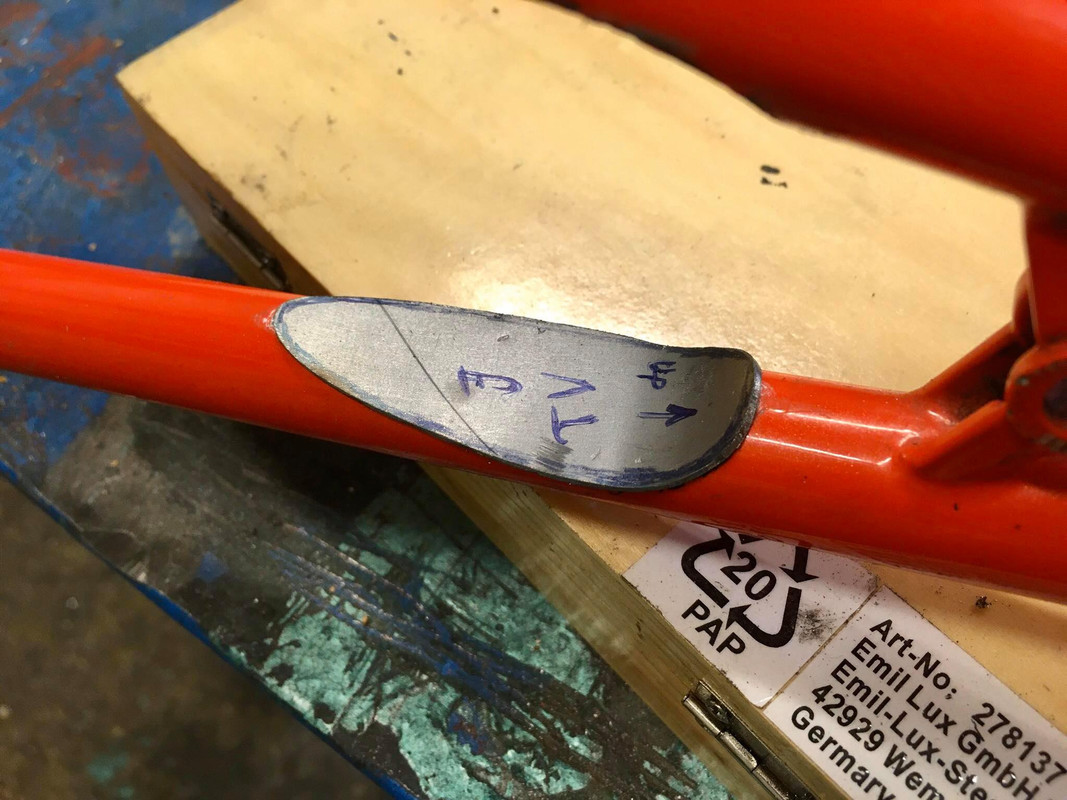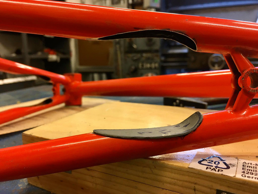 to fit the tires i need to cut the stays and i'll also add a disc tab.
