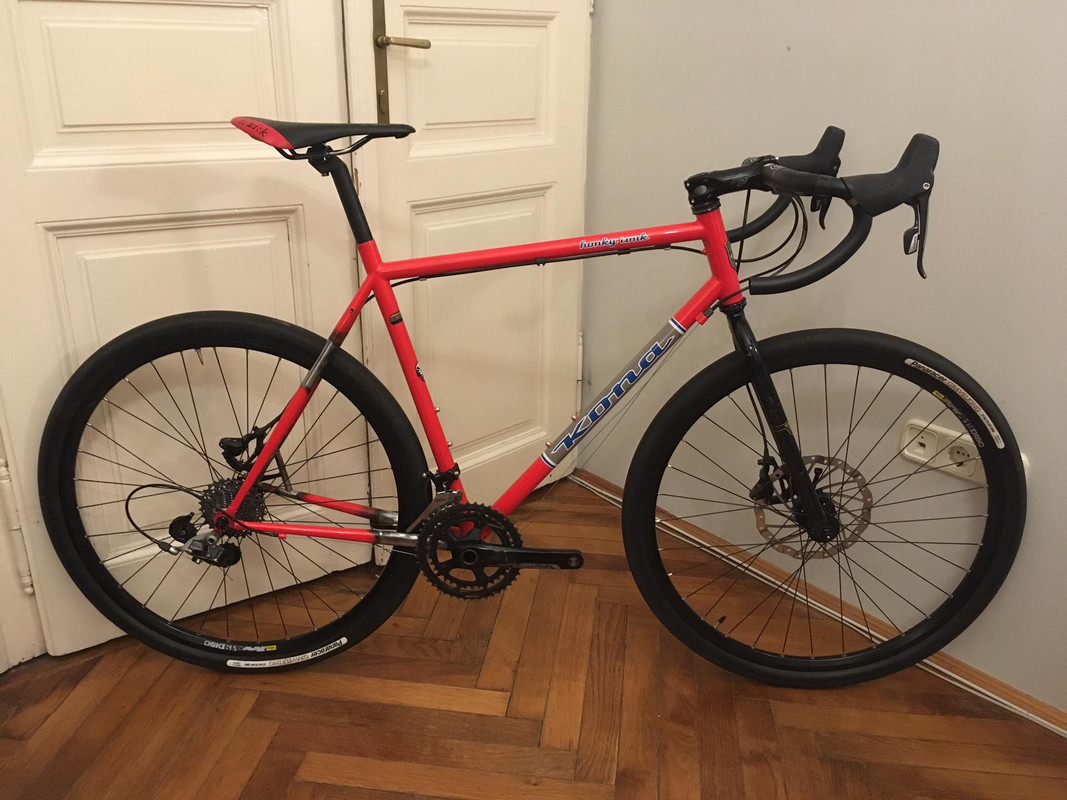 i got this one because i really liked the geometry of my paddy wagon back in the day and i couldn't find a honky inc (factory disc version) that wasn't overpriced.. this will be the runaround bike. rival hrd group and 650x42 tires.
