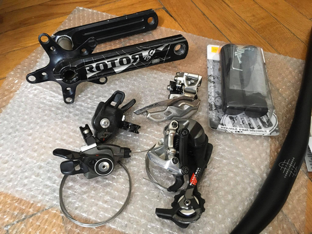some stuff arrived for the explosif.. this is unintentionally turning into a "let's make it as cheap as possible" project - xx shifters and mechs: £75, rotor xc2 cranks: £20 :D