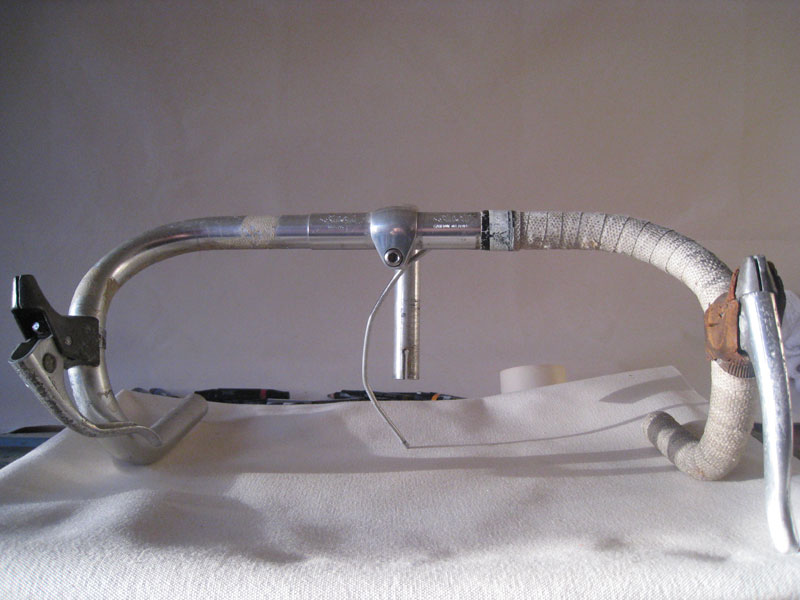 First up Cinelli 66-42 with Specialized stem and Campag levers. These have taken a knock but can be put right with some love. Right lever is very bent, the bars are very slightly bent.