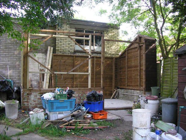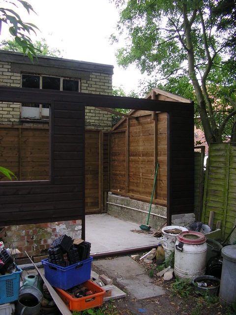 ^ The gutter sits on some supports that are behind the rear wall of the shed. To get as much usable internal space the gutter will initially be visible inside on the left, where you can still see the white wall. This section will have a plywood box built around it.
