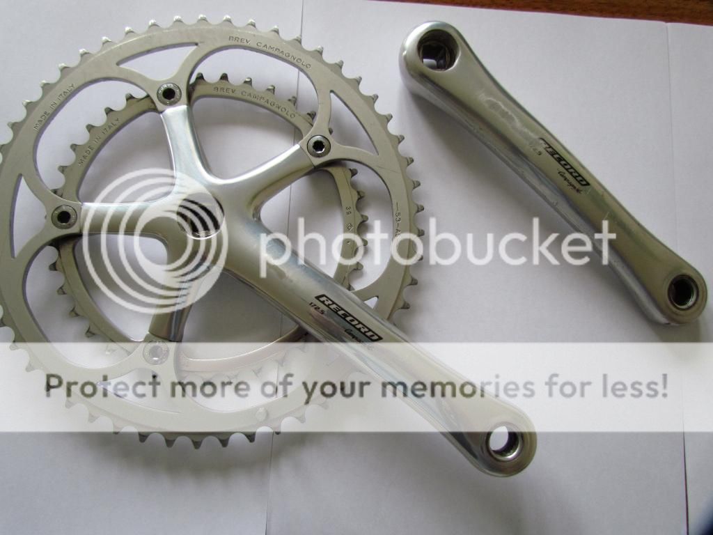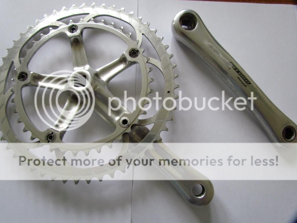 Campagnolo Record chainset & Bottom bracket,Chainset has usage marks but teeth don't show much wear I have used it on 9 & 10 spd setups without any problems,It has 53-39 rings & 172.5 cranks