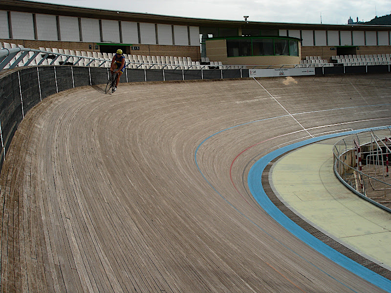 I was passing by the olympic velodrome in Barcelona and saw some of the Catalunyan team practicing. There was also one dude there with one leg giving it some round the track as well!)