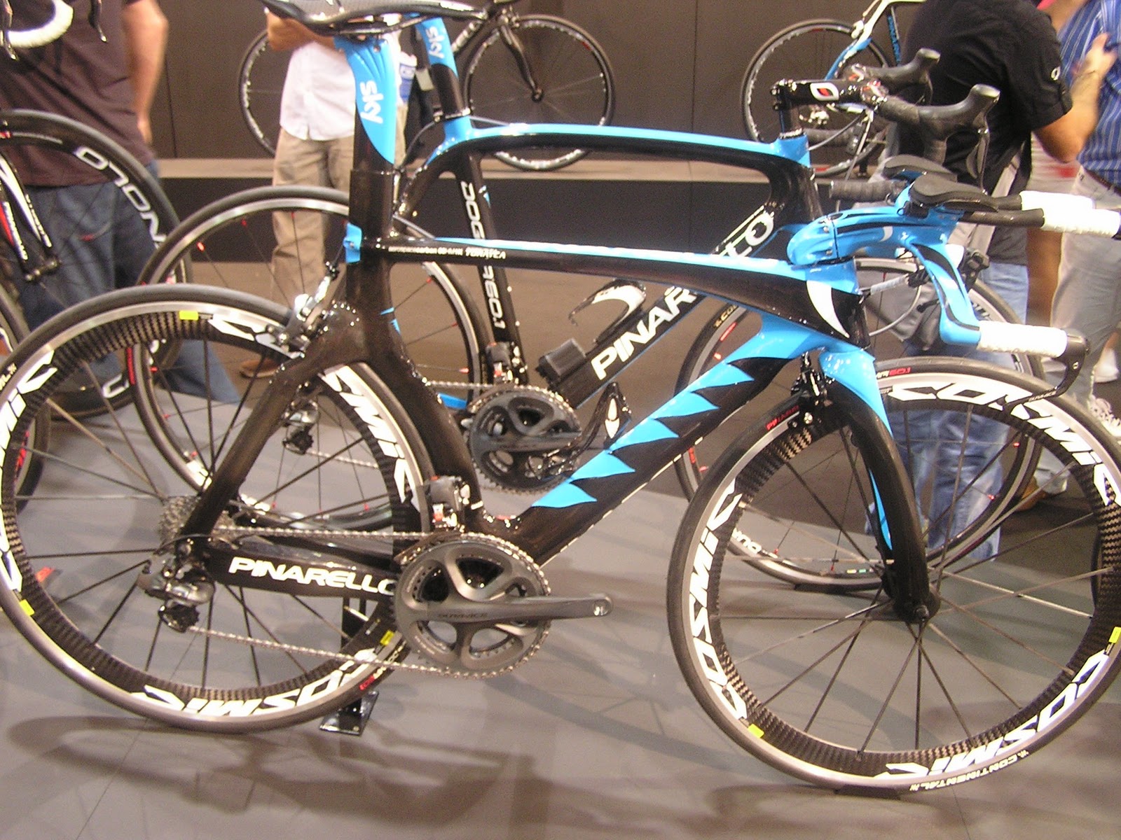 I saw one in plain white (I think with subtle-ish italian highlights) and it was pure porn. The stickers are ugly, the down-tube is apparently more aero. Still other brands haven't bothered with it so maybe its not such a big deal in the wind tunnel.