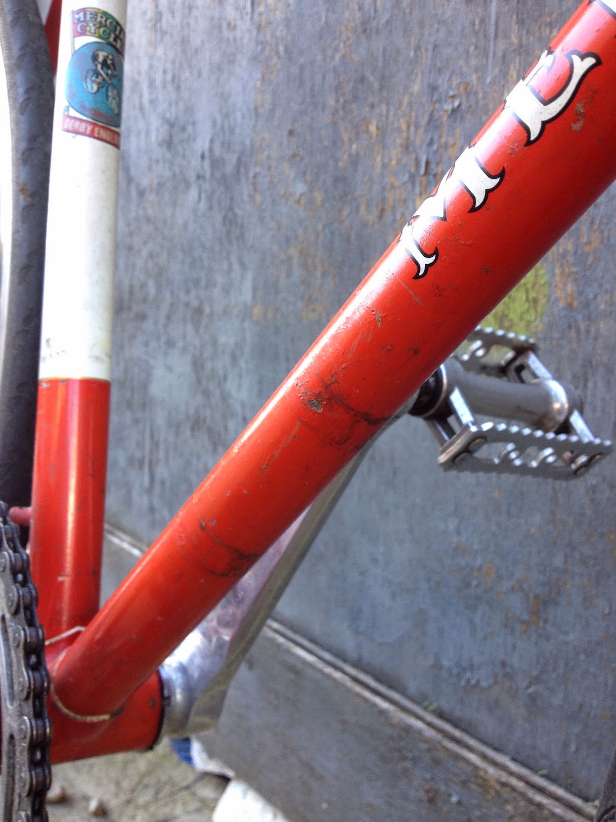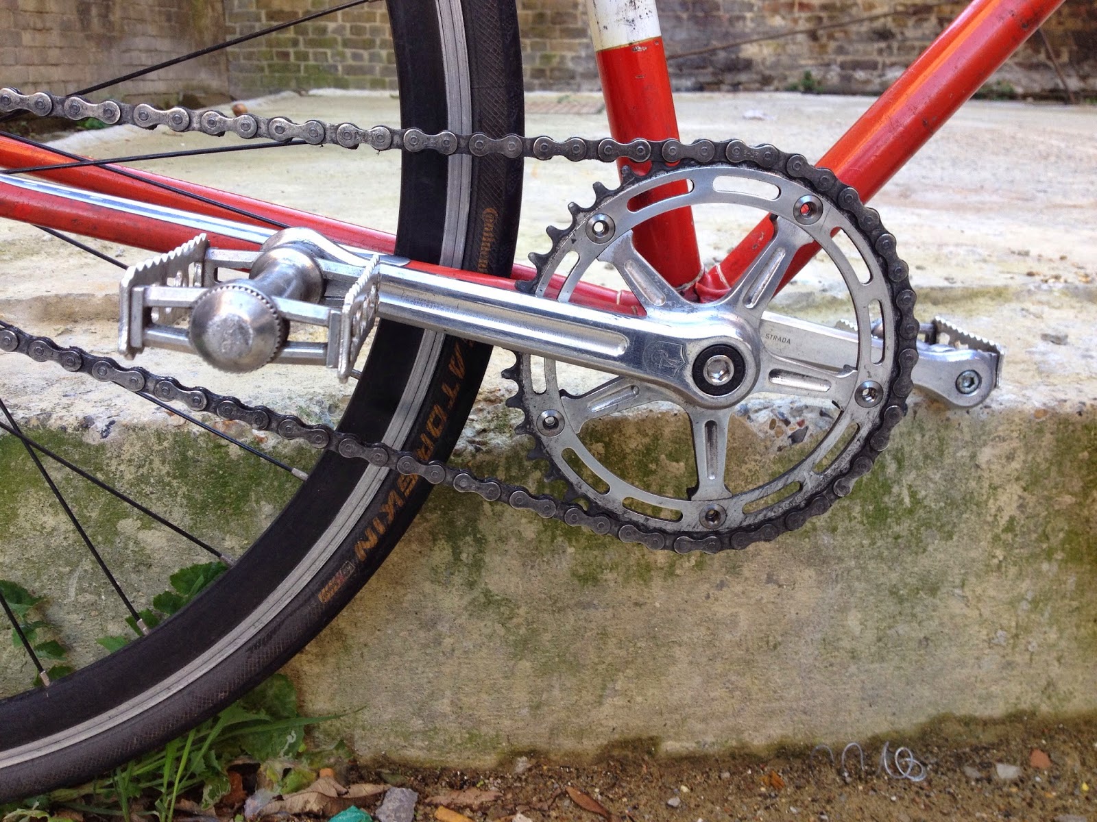 Cog: Dura Ace lockring (£20 for cog & lockring)Using this from original poster/seller as nothing much has changed "Frame & forks are showing plenty of ‘character’ through use / wear over the years, I think this is probably the original paintwork - it is not perfect, there are lots of small marks / scratches, small signs of rust & paint touch-ups. However, it is all cosmetic, there are no dents, cracks or any structural damage. Nice detailed lugwork with handpainted linings. At some point it has had clamp-on downtube shifters which have left a mark."