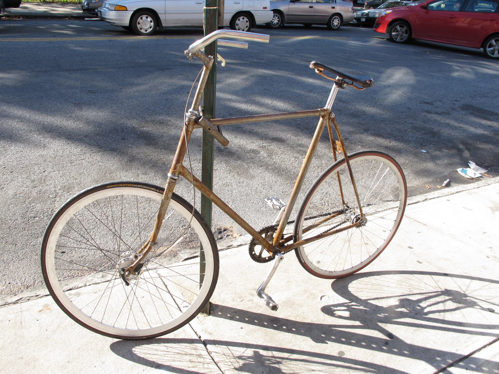 "uh look at my shite bike made out of crap and covered in ironic rust. I'm so unpredictable that I've gone and put white deep-V rims on it. That's the thing about me, you think you've got me figured out but you don't....by the way I don't even care if it gets stolen"
