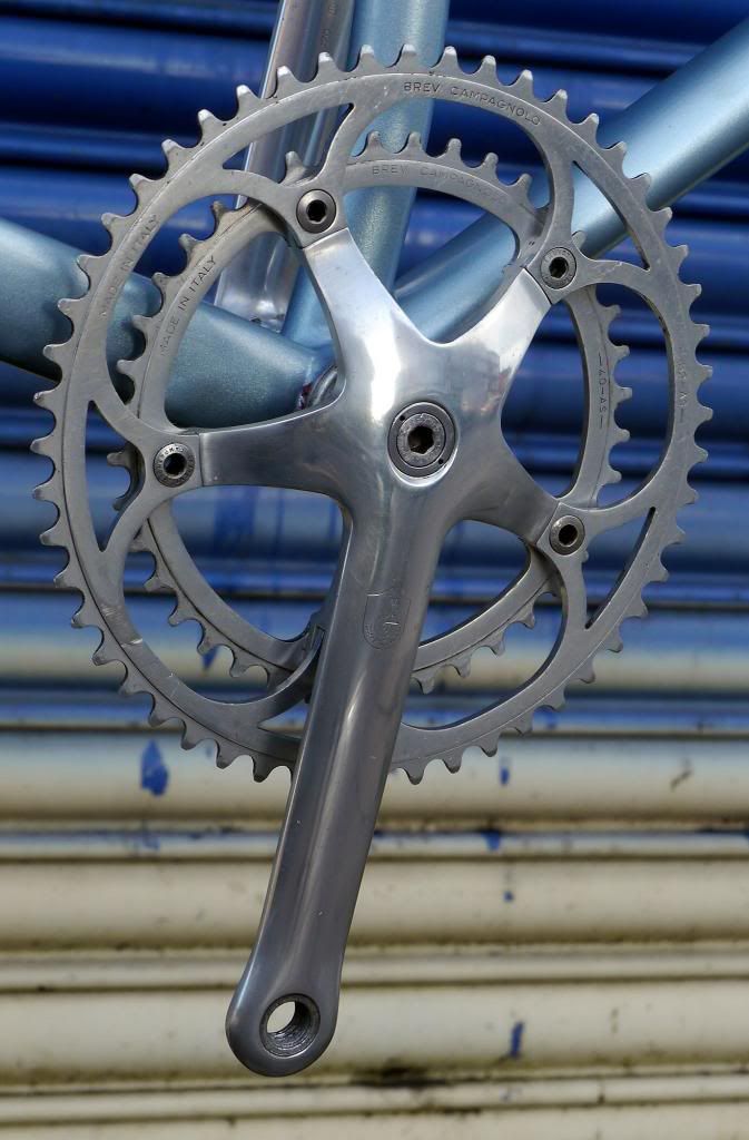 Dug out the perfect chainset for the build - a Campag C-Record , 1st gen as well , with the engraved cranks .