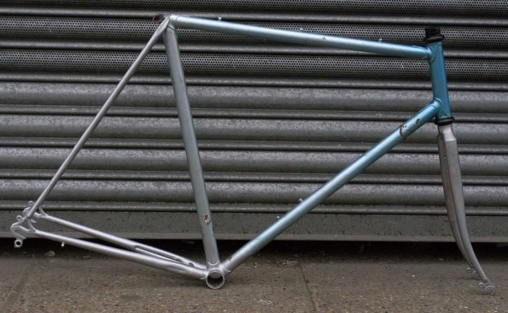 126mm rearTange cro-mo tubing with nice long point cut out lugs , campag ends. Good headset. Correct 26.4mm fluted micro adjust seat post also included (not shown in pic). Paintwork presentable but not great,B/Bthreads have been chased . Road race 73/73 Geo so would make geat fixed conversion. Frame is straight with no dings, English threaded. £55.00