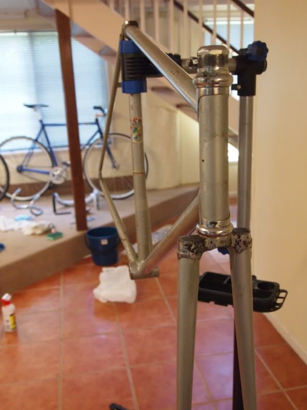 Re-installed the fork today.... Frame is now as free of rust as I can get it.... and got as much of the grime as I can with a cloth and detergent.... The paint so so brittle in some spots then perfect in others