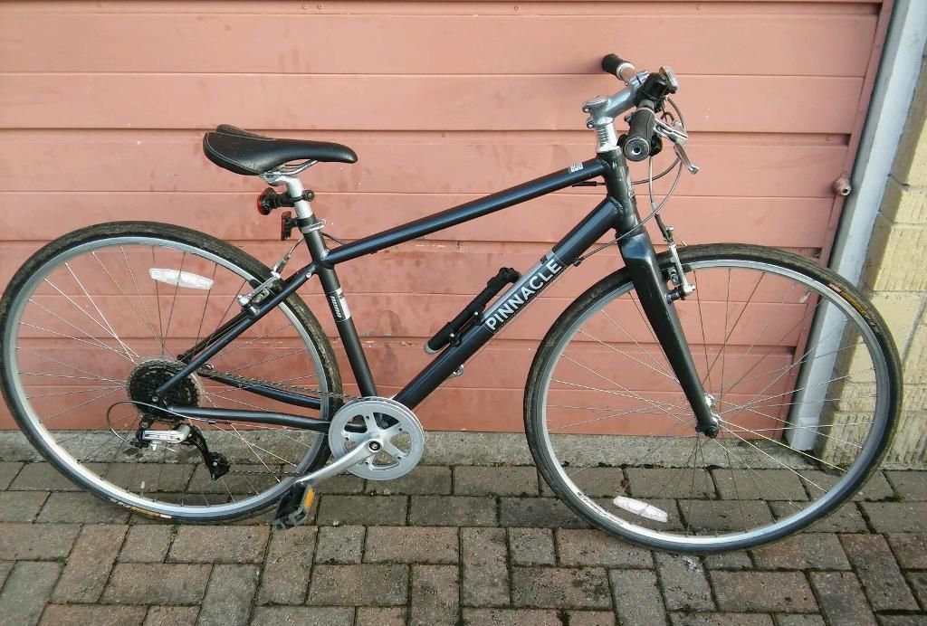 So ended up buying the Pinnacle, figured it was a good enough price even as a donor bike. Road it home with the seatpost fully up and its a blast, really fast! In fact is was so comfy it's convinced me to switch to upright bars on my ss road bike! I was also really impressed with the acera groupset, I'm generally a bit snobby about low end groups but it shifts really smoothly.