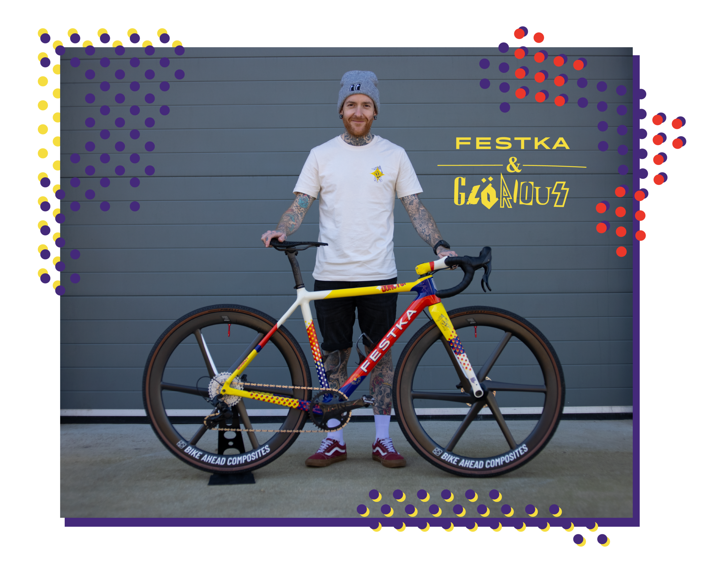 Given the fact that a Festka has been Matt’s go to roadbike for a good while, it was only a matter of time until we agreed on a collab. A jersey had been on the cards for a while but when Matt showed interest in getting a gravel bike from us, we suggested to him that he design the scheme for it to be also offered as a limited edition.