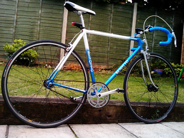and here's my bike. singlespeed at the moment. i will flip the wheel around when i can be arsed to buy a cog and get up the courage to go down bromley hill fixed. and i know the cables are all over the place but I can't be arsed to replace the 30 year old brakes.